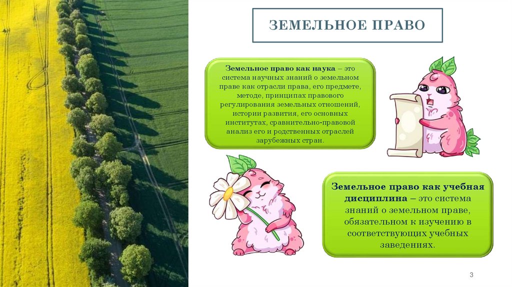 ЗЕМЕЛЬНОЕ ПРАВОЗемельное право как наука – это