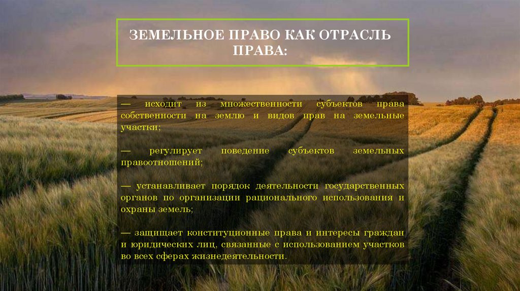 ЗЕМЕЛЬНОЕ ПРАВО КАК ОТРАСЛЬПРАВА: