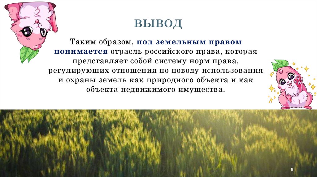 ВЫВОДТаким образом, под земельным правом