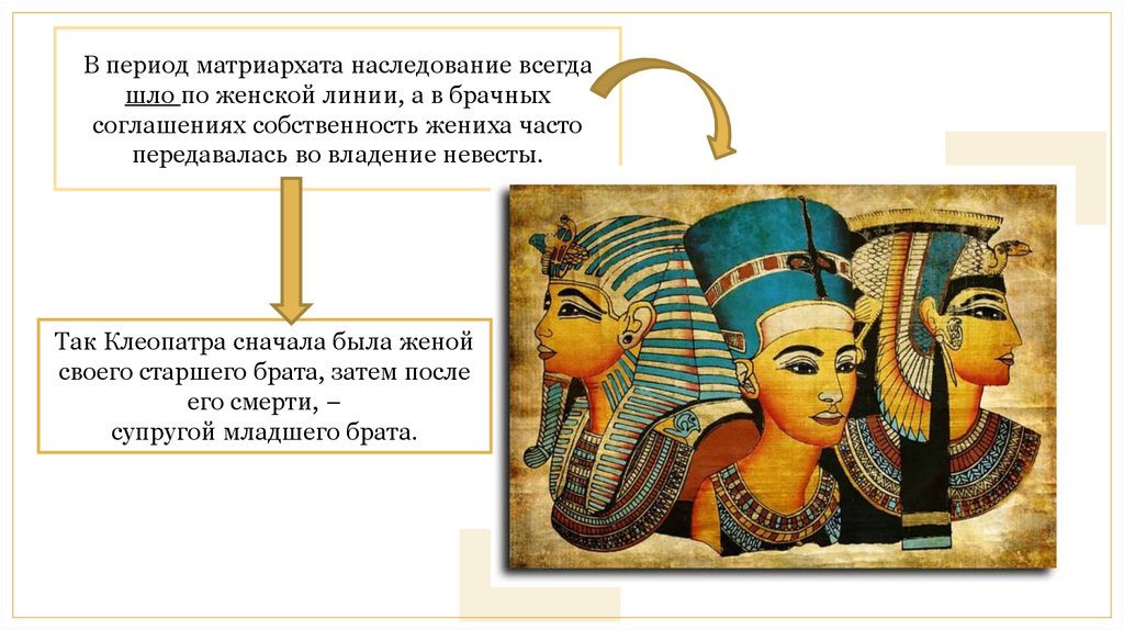 В период матриархата наследование всегдашло по женской линии, а в брачных