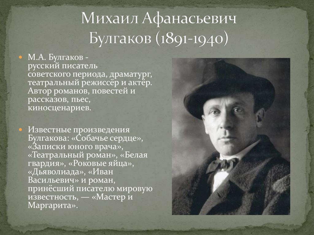 М.А. Булгаков - русский писатель советского периода, драматург, театральный режиссёр и актёр