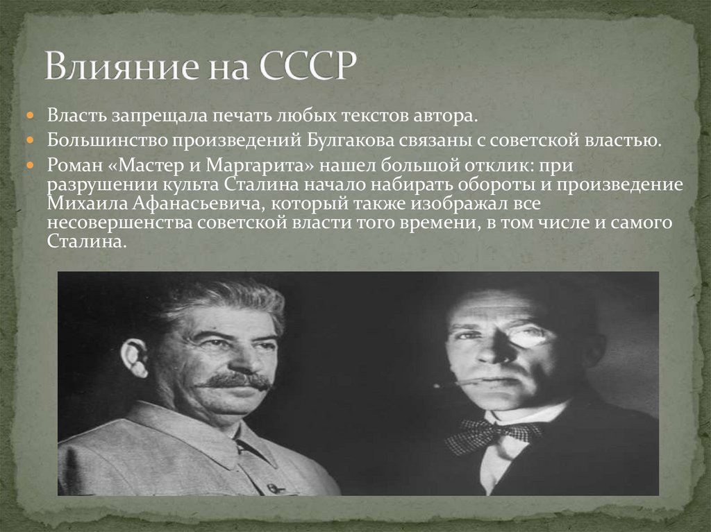 Власть запрещала печать любых текстов автора.Большинство произведений Булгакова связаны с советской властью.