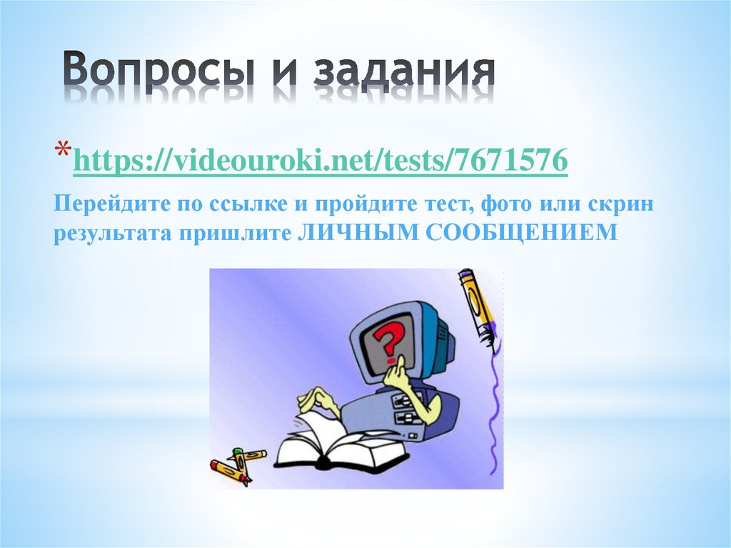 *https://videouroki.net/tests/7671576Перейдите по ссылке и пройдите тест, фото или скрин