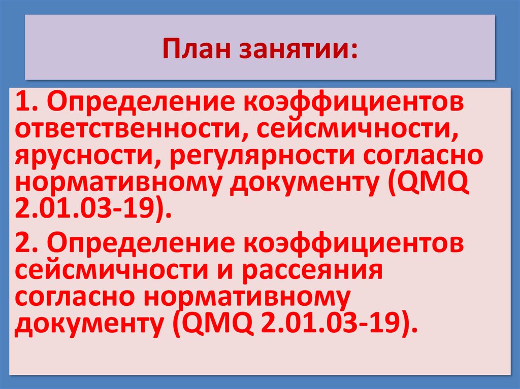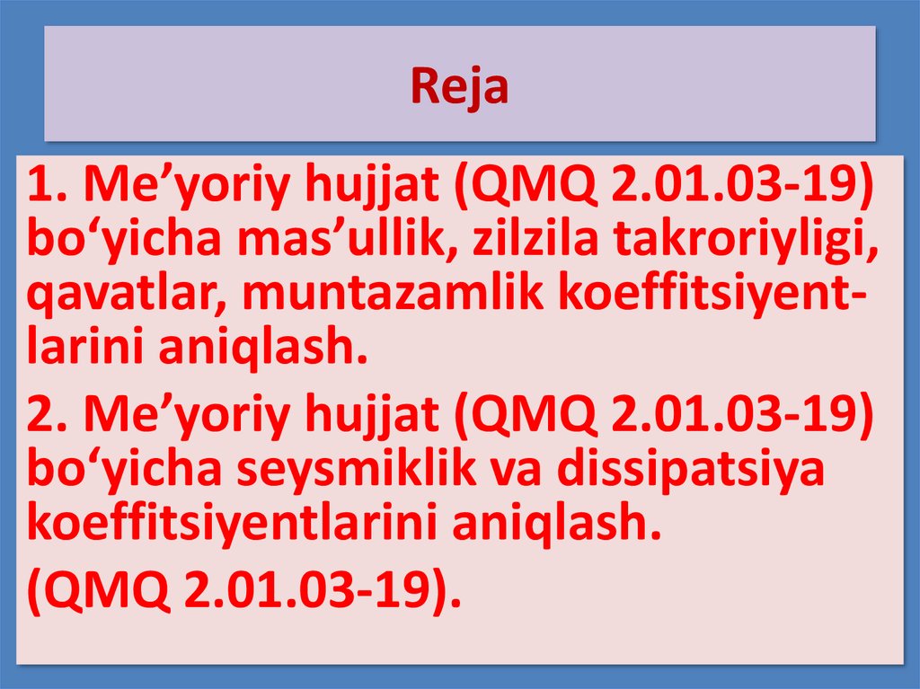 Reja1. Me’yoriy hujjat (QMQ 2.01.03-19)