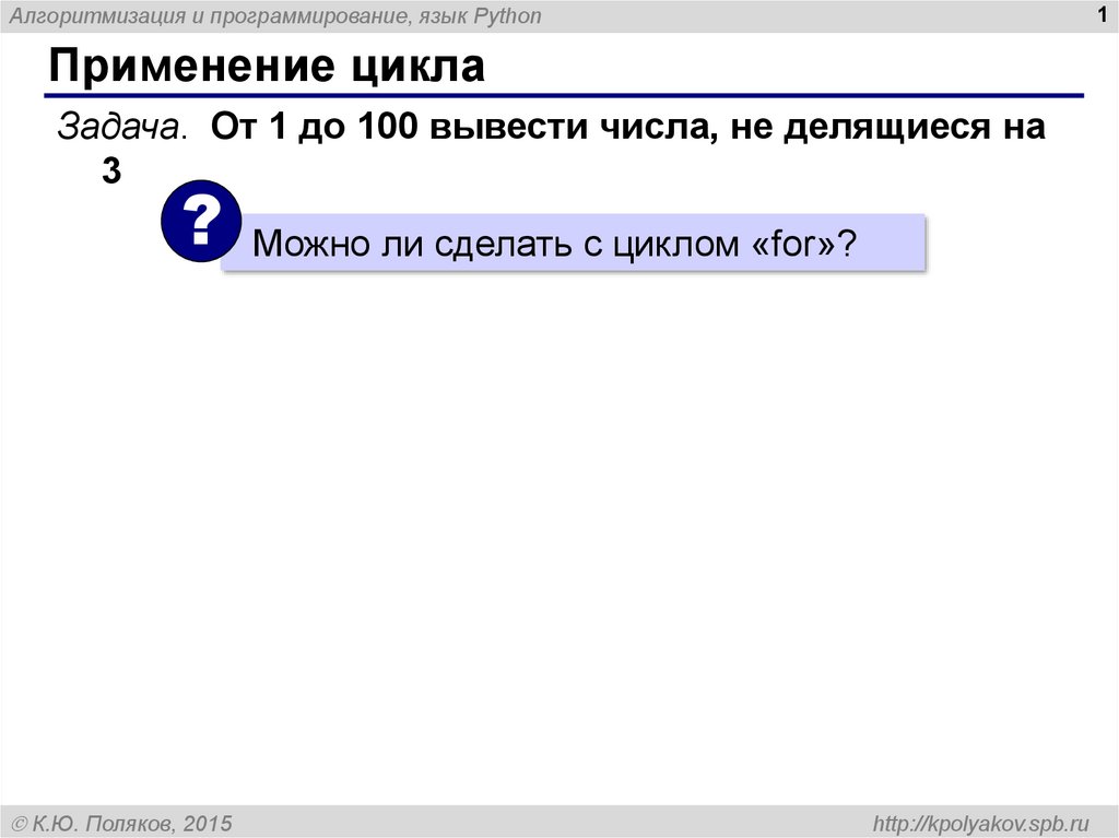 Применение цикла. Алгоритмизация и программирование, язык Python (8 класс)