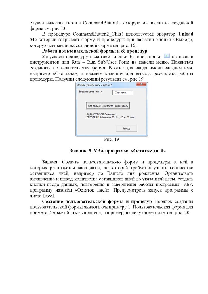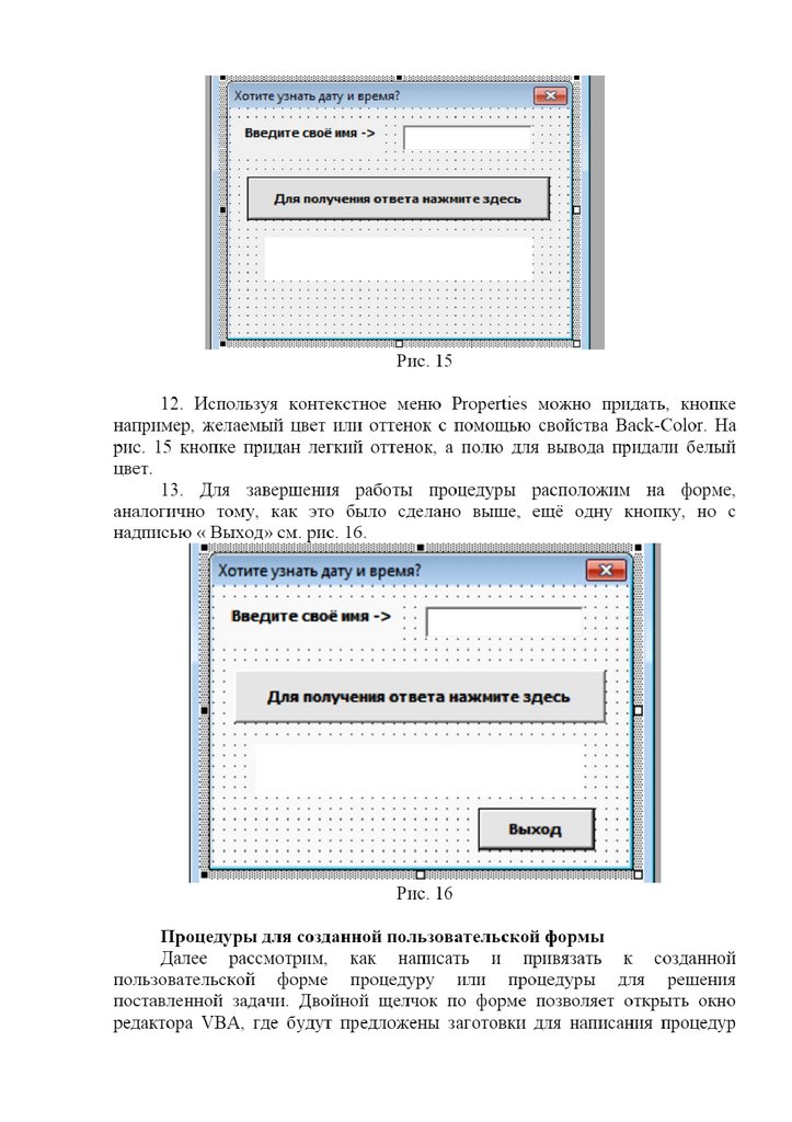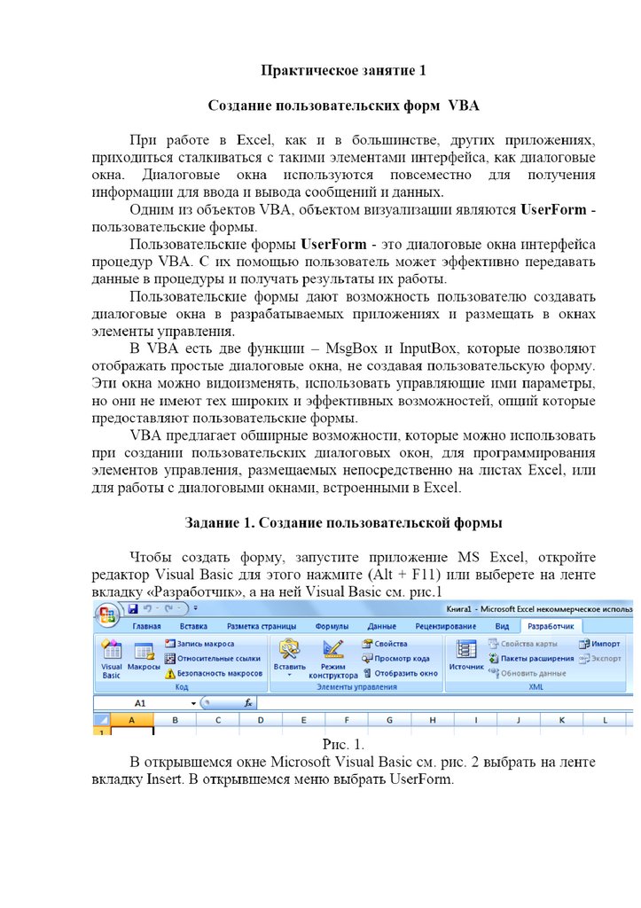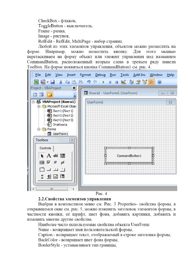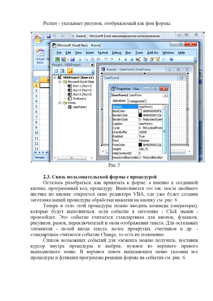 Информатика. Материалы к лекции 5. Пользовательская форма на VBA