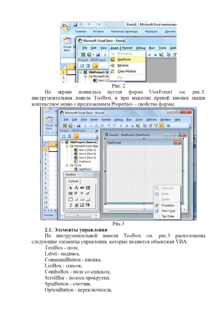 Создание форм в VBA и включение их в проекты. Лекция 6
