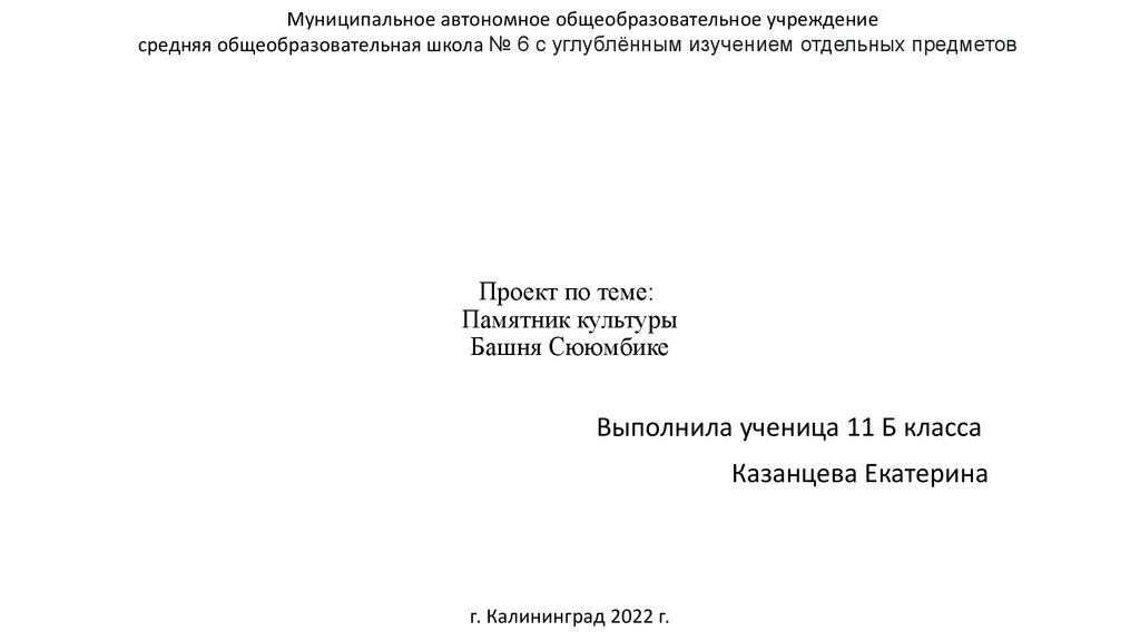 Муниципальное автономное общеобразовательное учреждениесредняя общеобразовательная школа № 6 с углублённым изучением отдельных предметов
