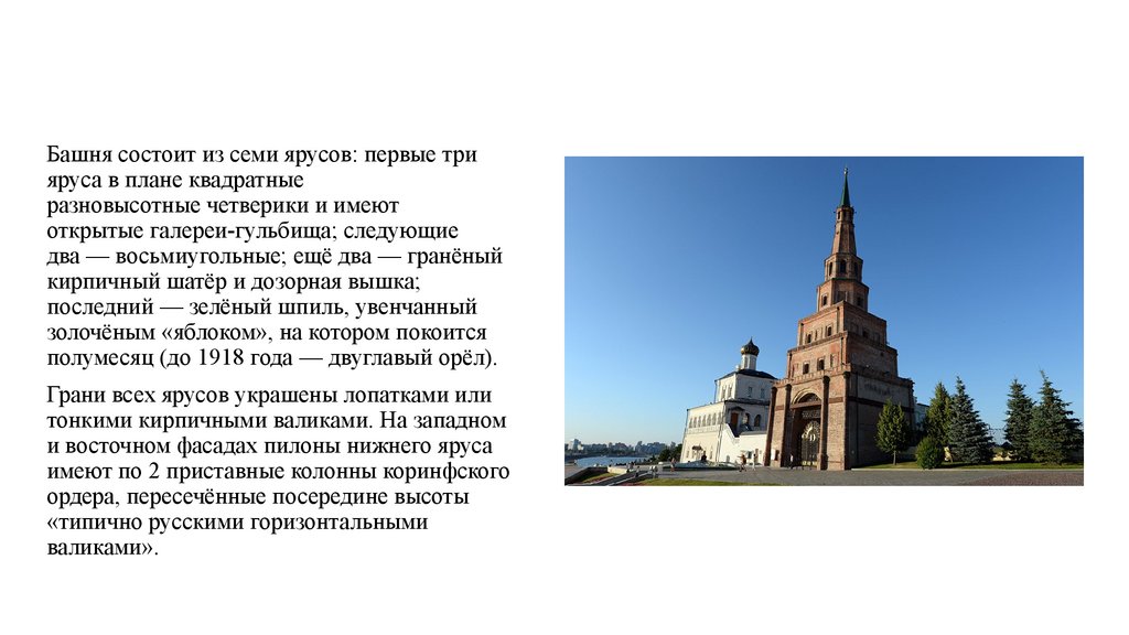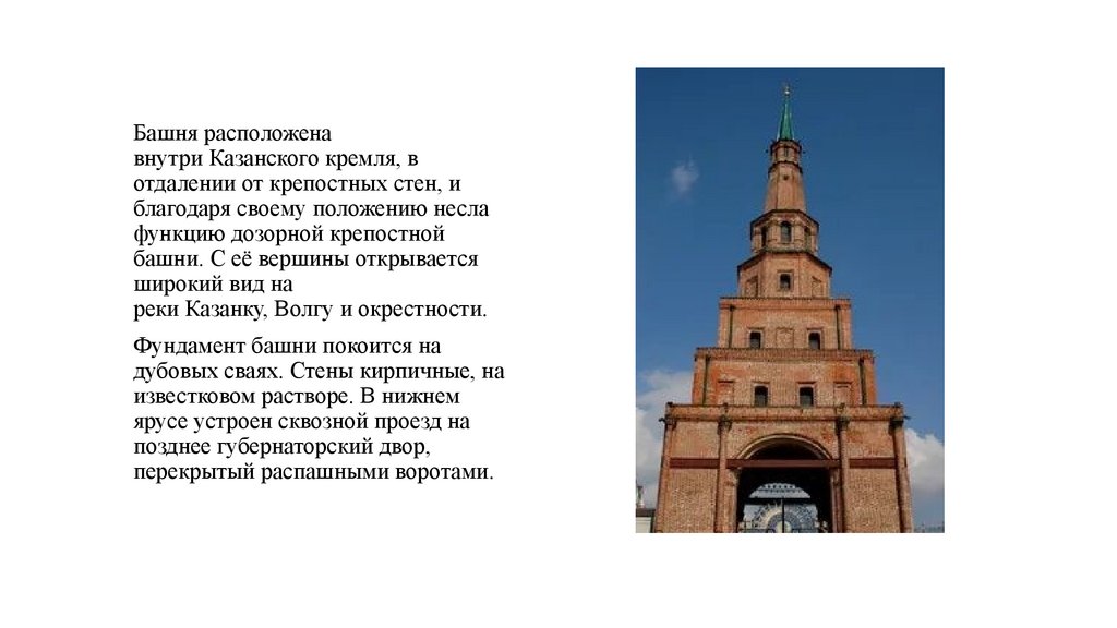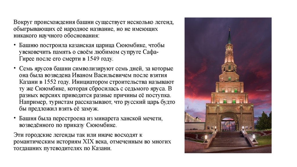 • Башню построила казанская царица Сююмбике, чтобы
