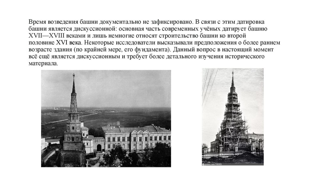 XVII—XVIII веками и лишь немногие относят строительство башни ко второй