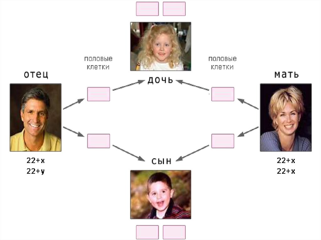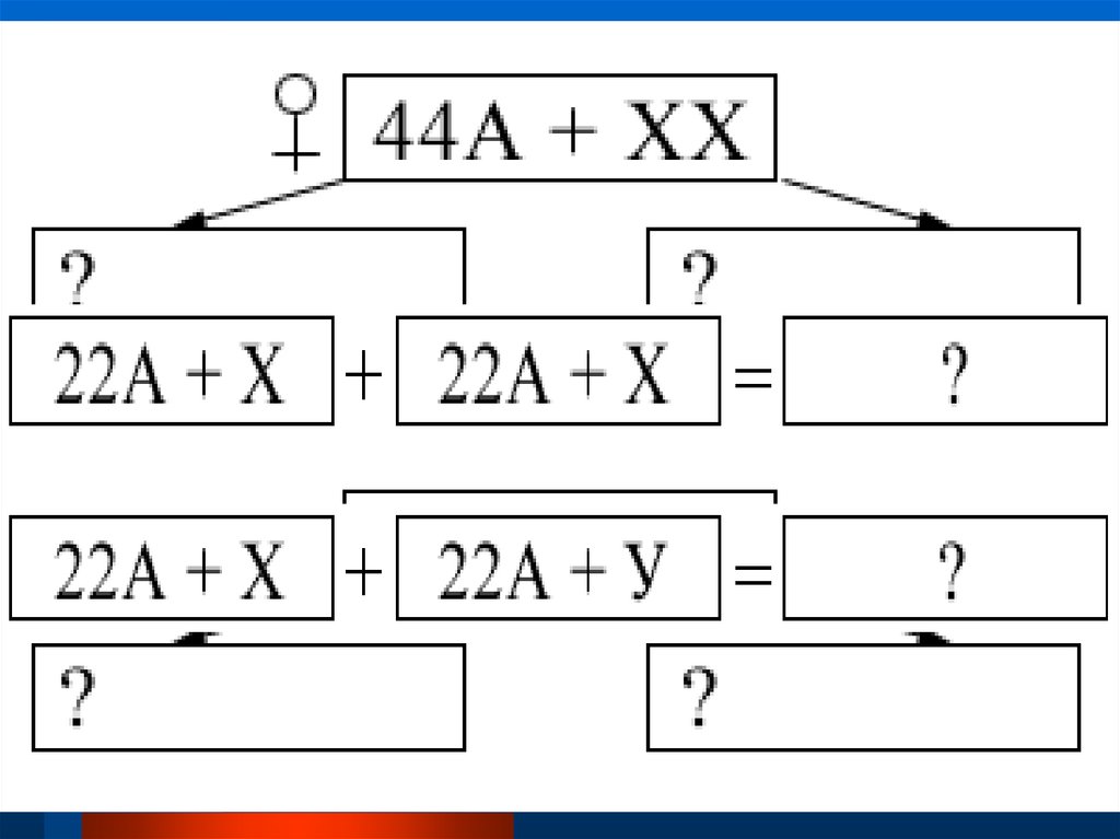 22 пары аутосом + X X - ♀22 пары аутосом + X Y - ♂