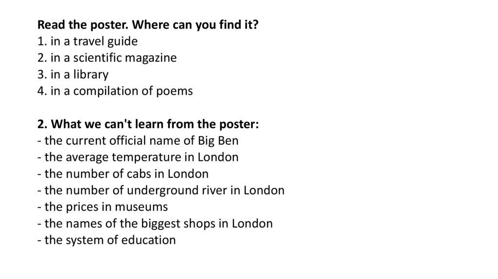 Read the poster. Where can you find it?1. in a travel guide