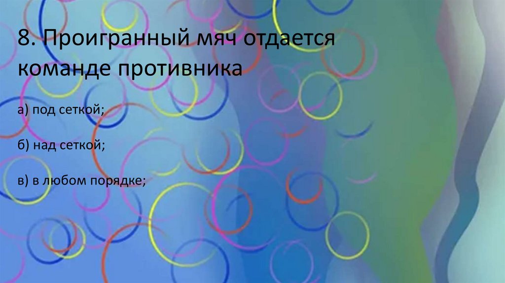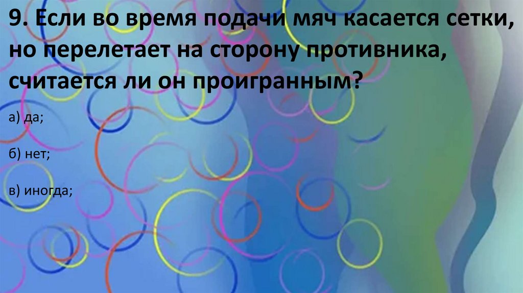 9. Если во время подачи мяч касается сетки,но перелетает на сторону противника,