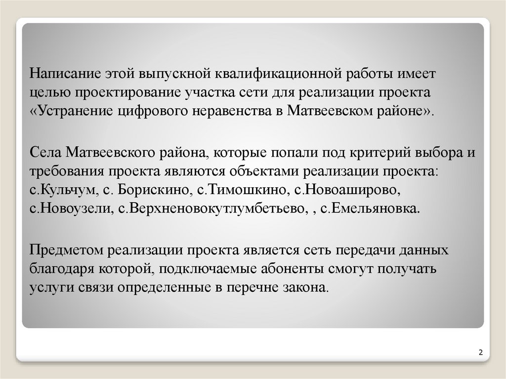 «Устранение цифрового неравенства в Матвеевском районе».