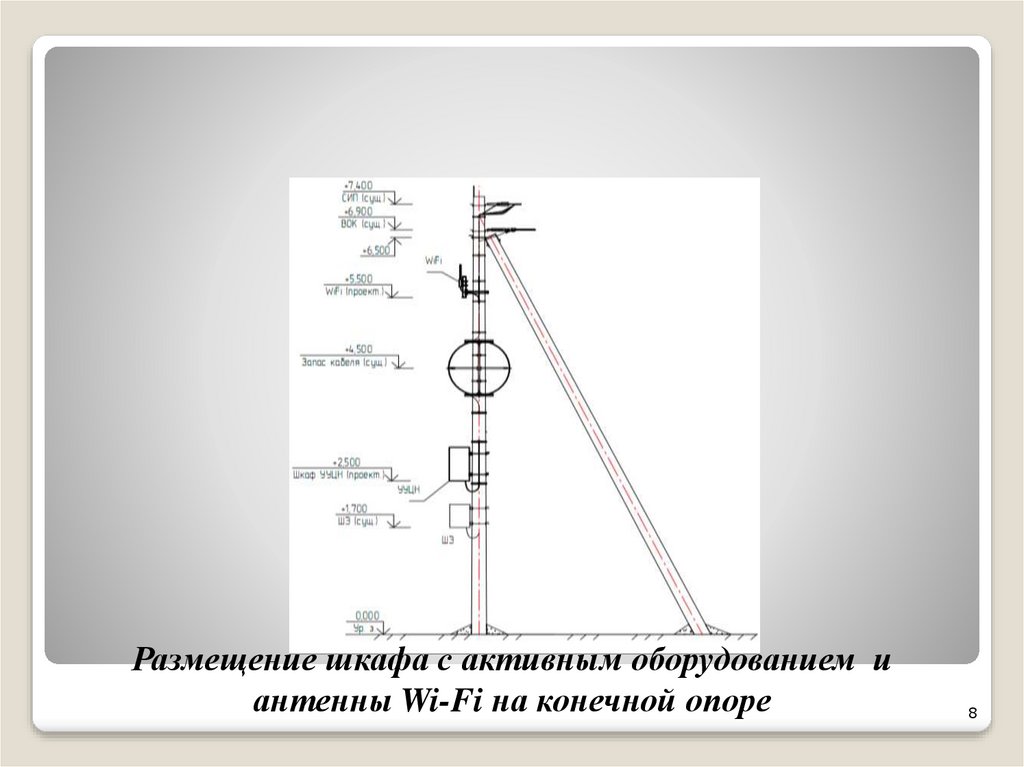 Размещение шкафа с активным оборудованием иантенны Wi-Fi на конечной опоре