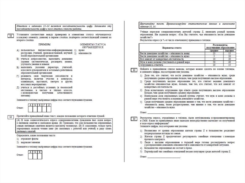 Образец бланков социологического опроса