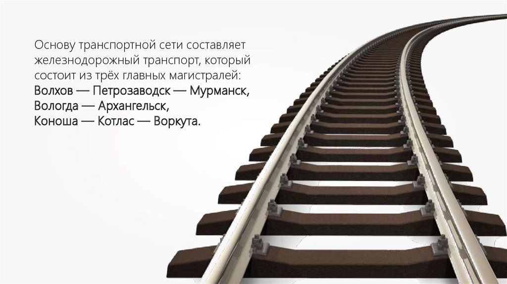 Основу транспортной сети составляетжелезнодорожный транспорт, который