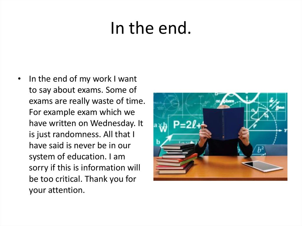 In the end.• In the end of my work I want