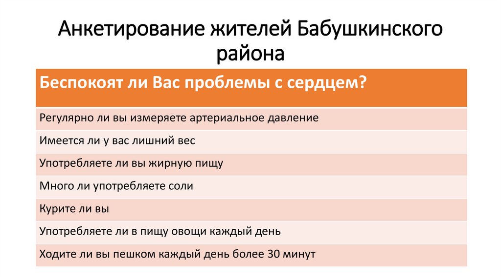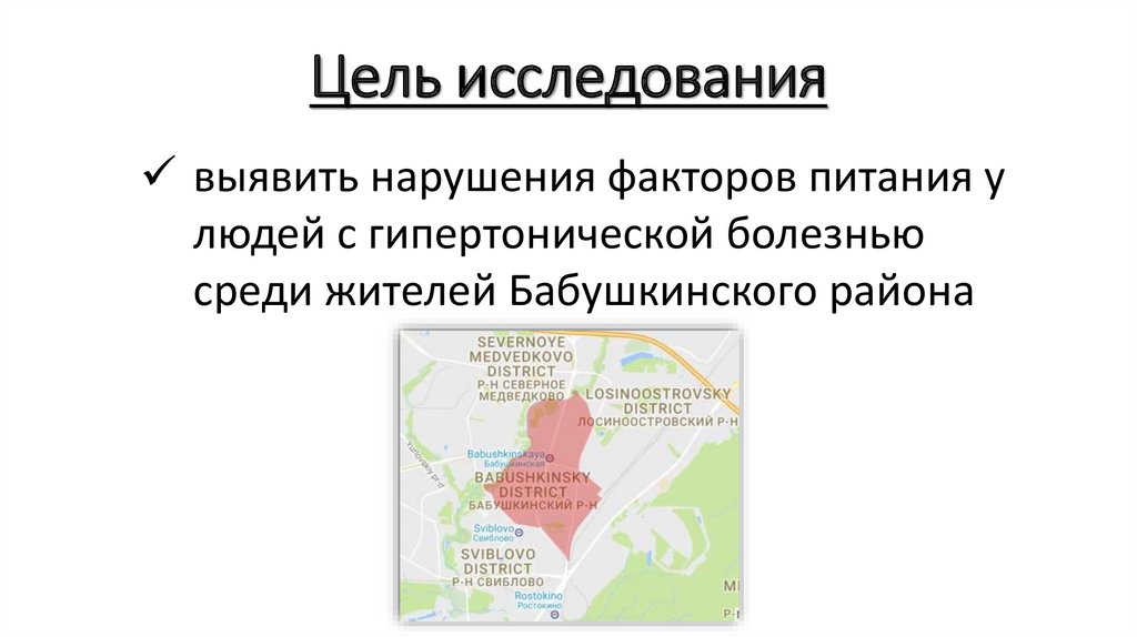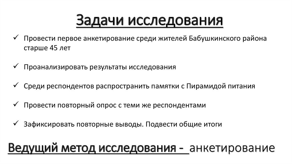 Задачи исследованияПровести первое анкетирование среди жителей Бабушкинского района