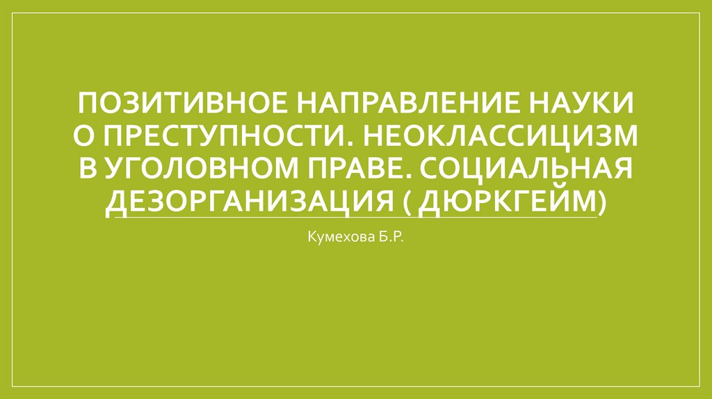 Позитивное направление науки о преступности. Неоклассицизм в уголовном праве. Социальная дезорганизация ( дюркгейм)