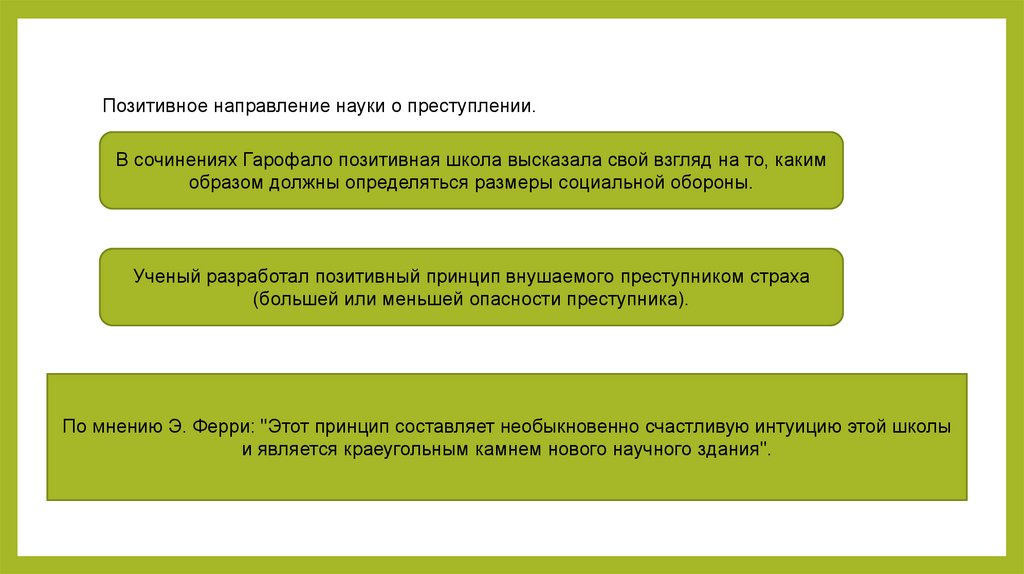 Позитивное направление науки о преступлении.В сочинениях Гарофало позитивная школа высказала свой взгляд на то, каким