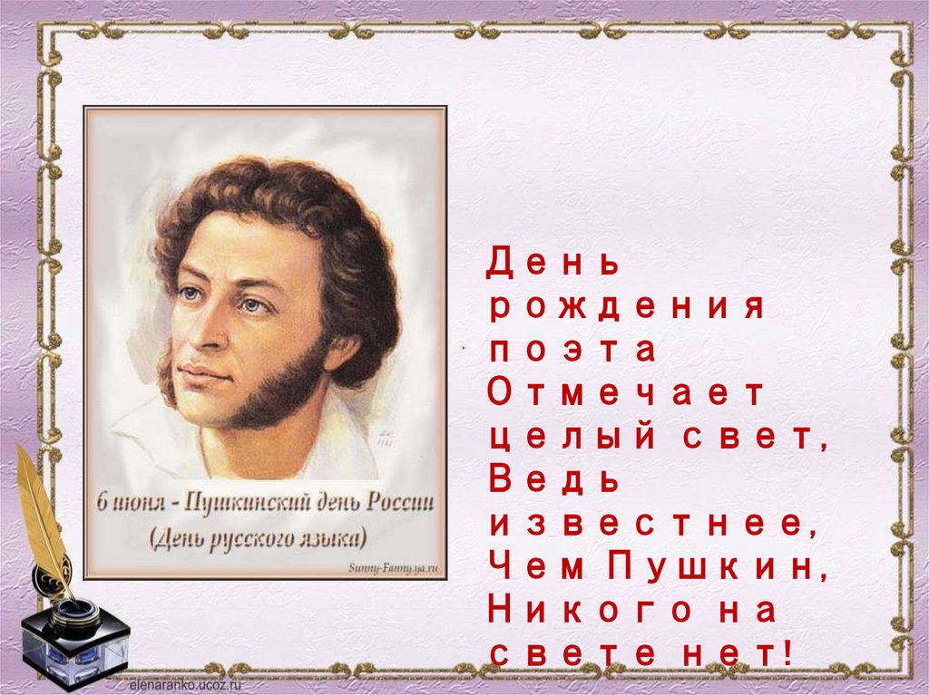 Он не померкнет, не увянет...Великий русский наш поэт.