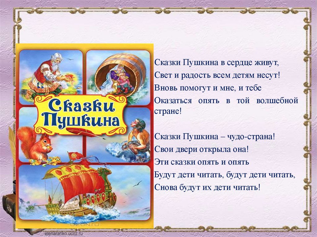 Сказки Пушкина в сердце живут,Свет и радость всем детям несут!