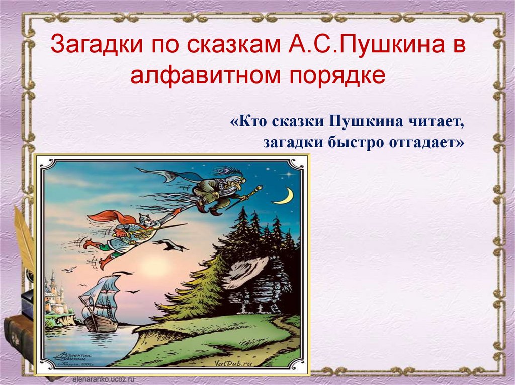 Загадки по сказкам А.С.Пушкина валфавитном порядке