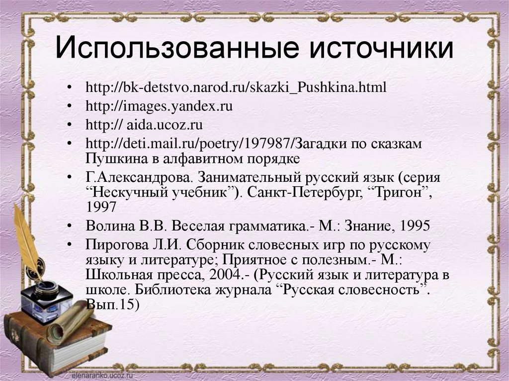 Использованные источникиhttp://bk-detstvo.narod.ru/skazki_Pushkina.html