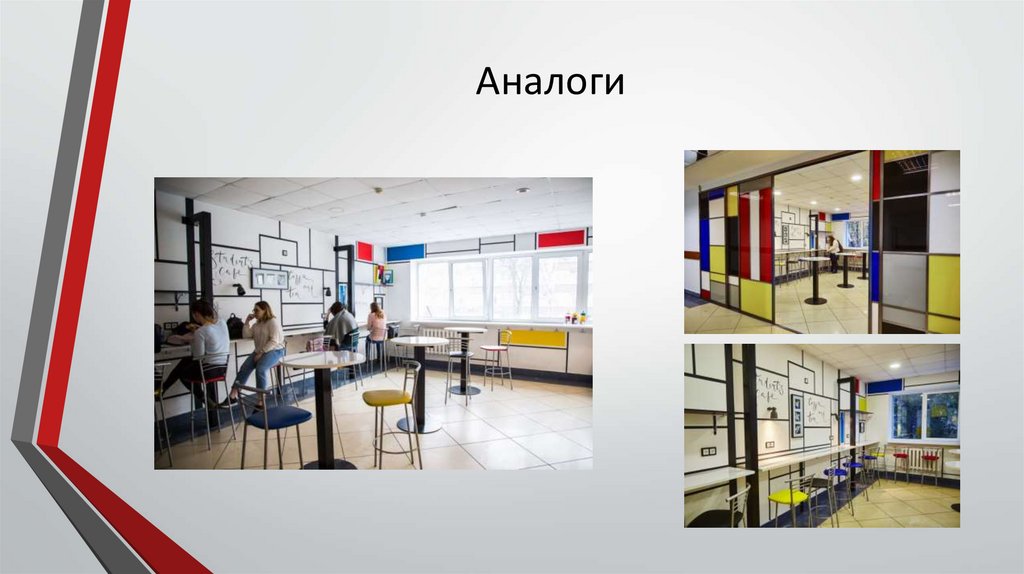 интерьере присутствует отсылки к работам знакомого всем хуждожника-Пита Мондриана.