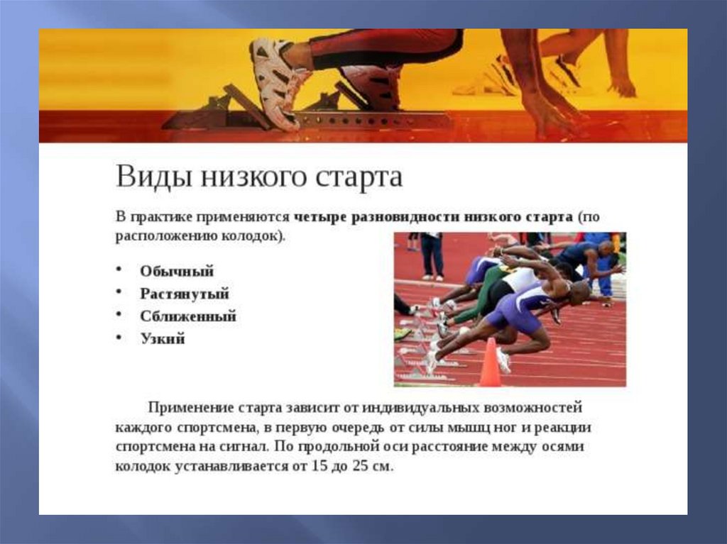Бег на короткие дистанции Понятие«спринтерский бег» объединяет группу