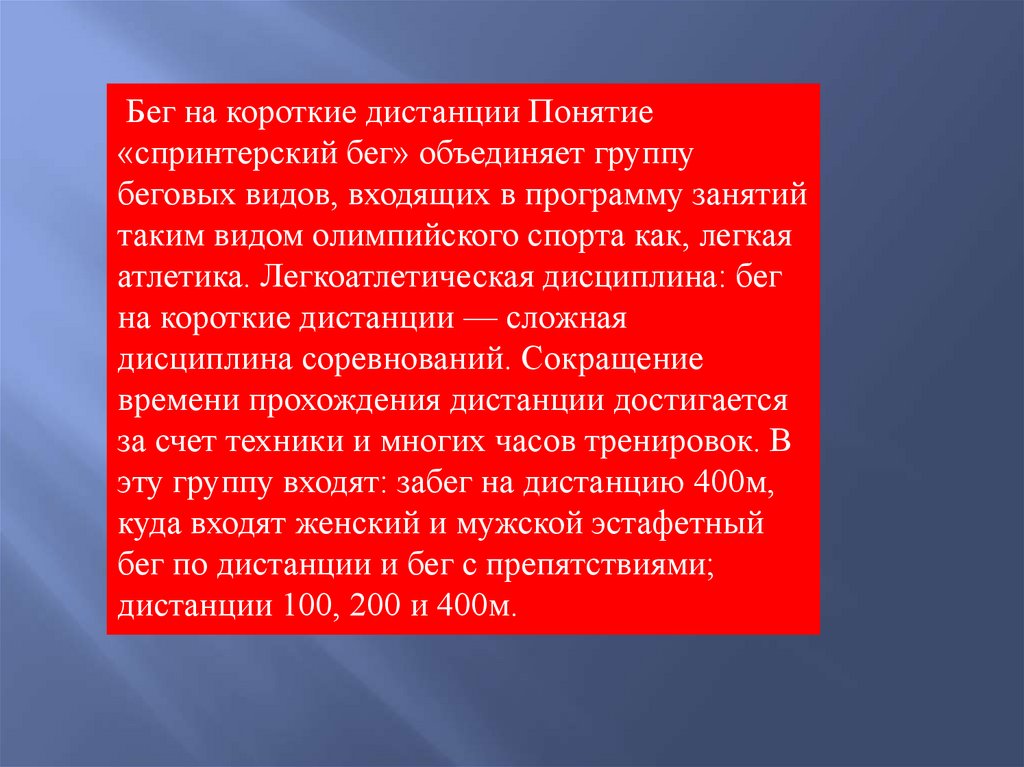 Содержание1 История бега на короткие дистанции
