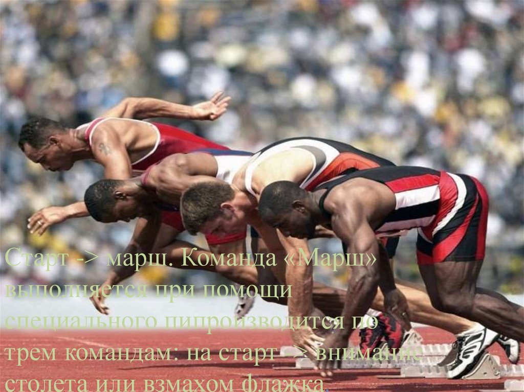 трем командам: на старт -> внимание