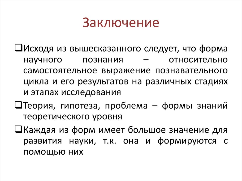 ЗаключениеИсходя из вышесказанного следует, что форма