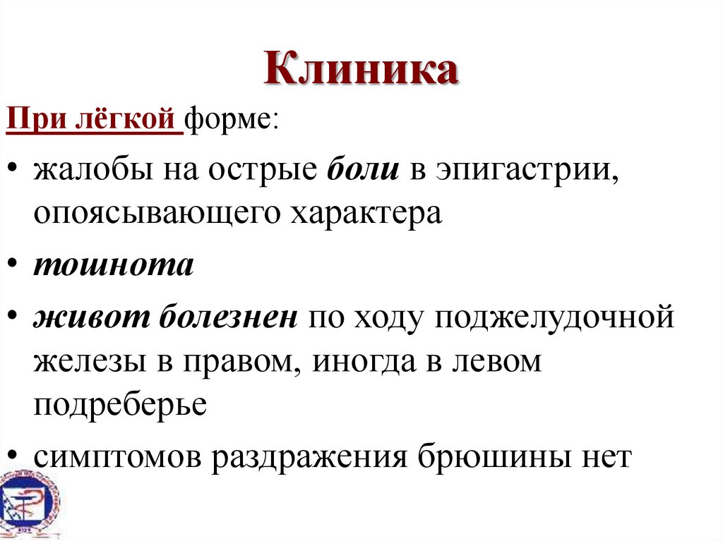 Острый панкреатит. Этиология, патогенез, клиника и диагностика