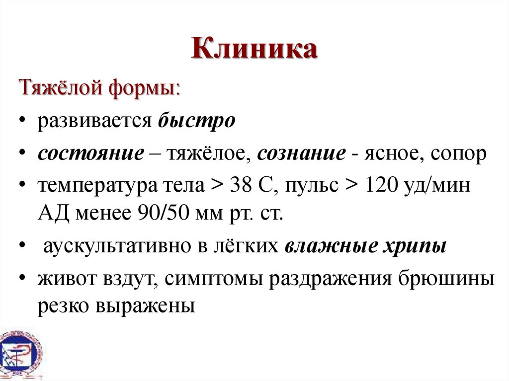 КлиникаТяжёлой формы: