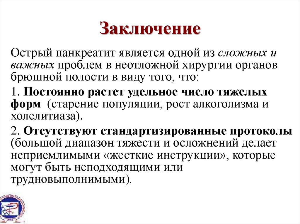 ЗаключениеОстрый панкреатит является одной из сложных и