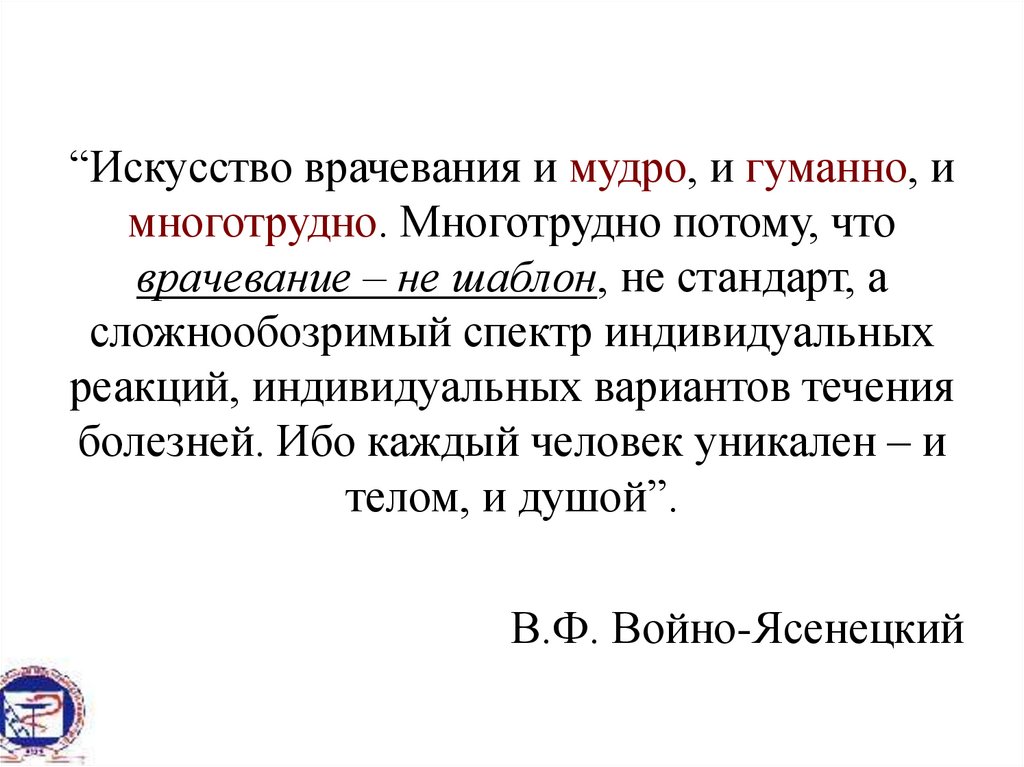 врачевание – не шаблон, не стандарт, а