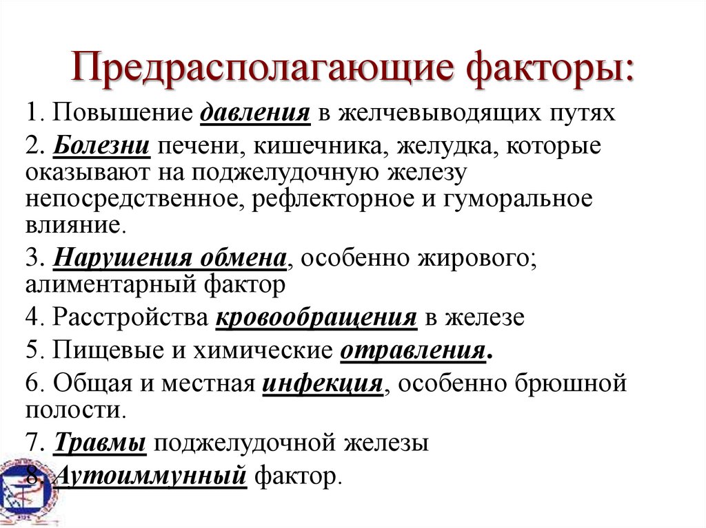 Предрасполагающие факторы:1. Повышение давления в желчевыводящих путях