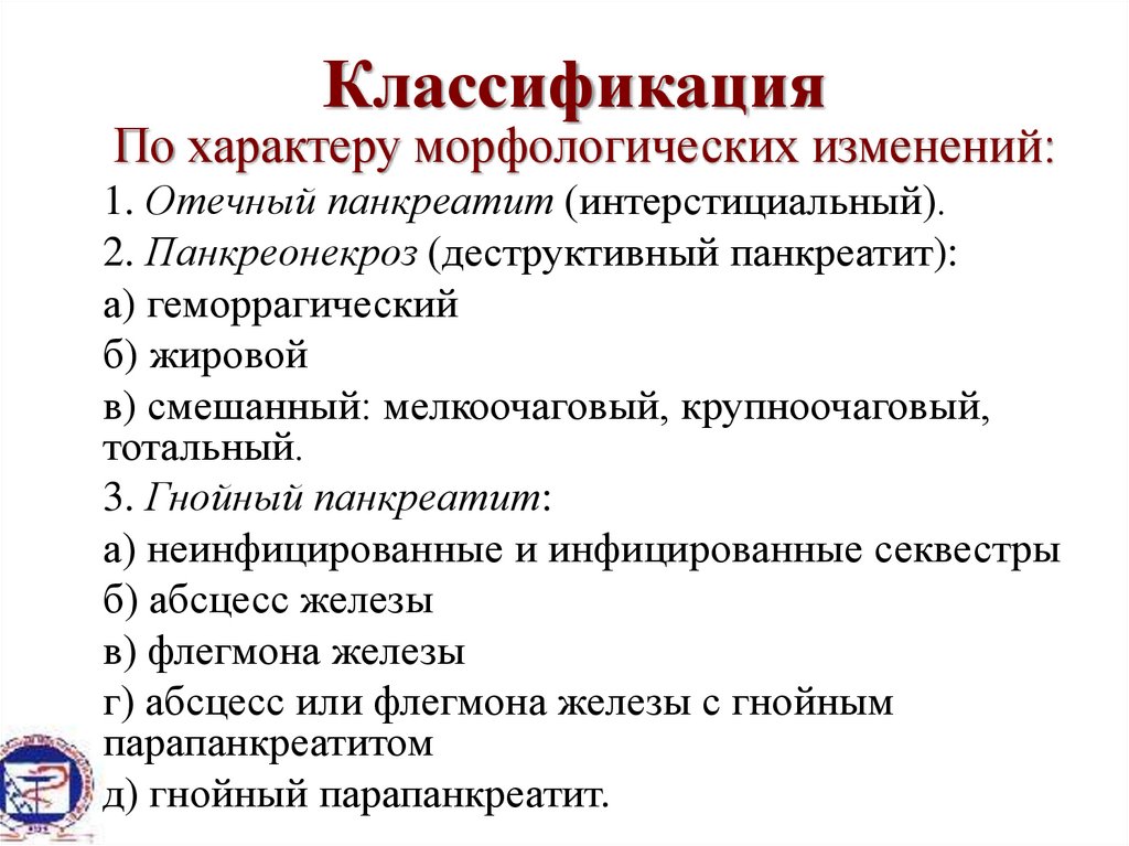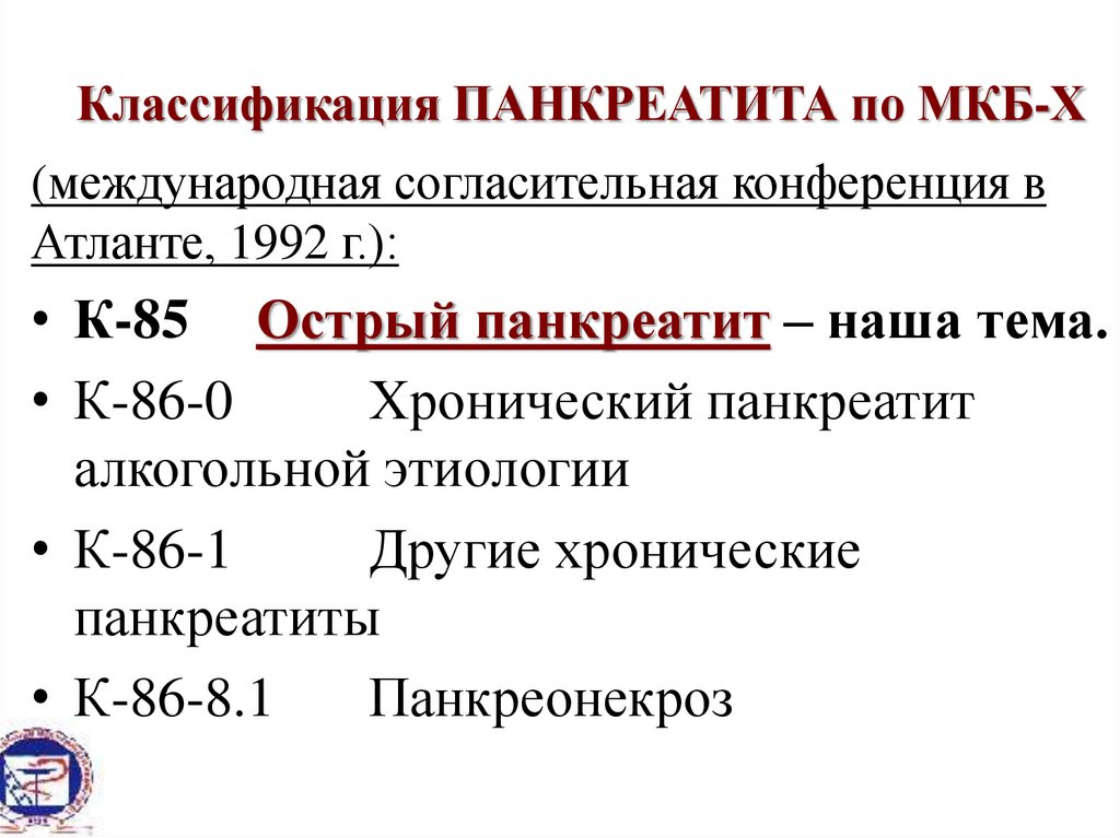 Классификация ПАНКРЕАТИТА по МКБ-Х(международная согласительная конференция в