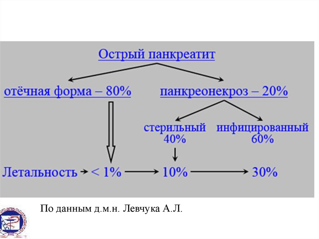 • Общая летальность при остром панкреатите – 1012%.