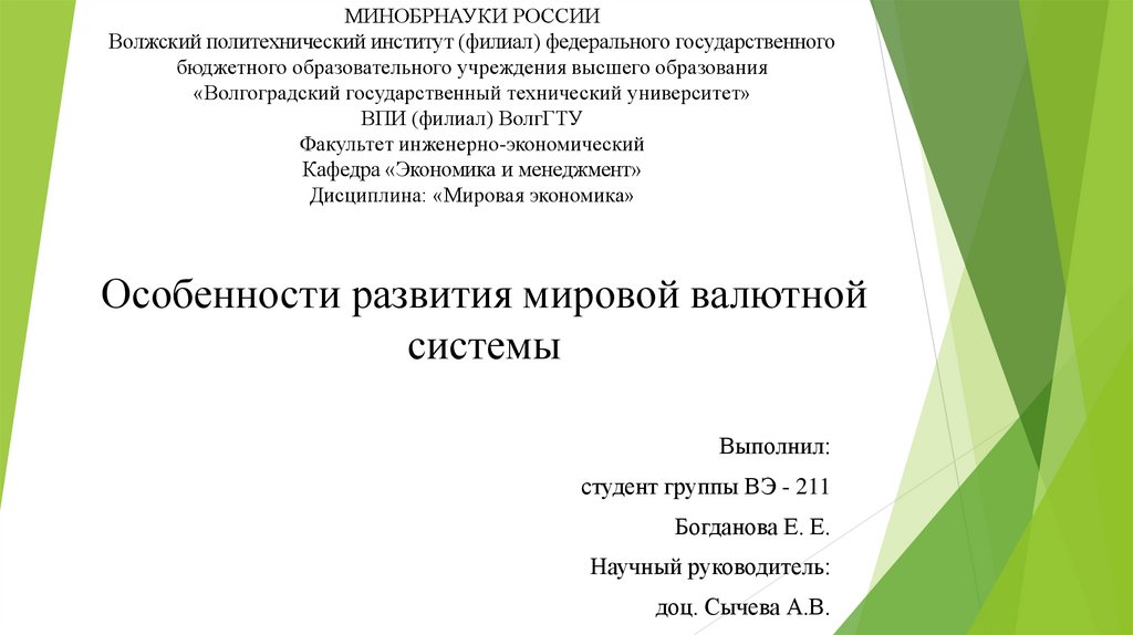 МИНОБРНАУКИ РОССИИВолжский политехнический институт (филиал) федерального государственного