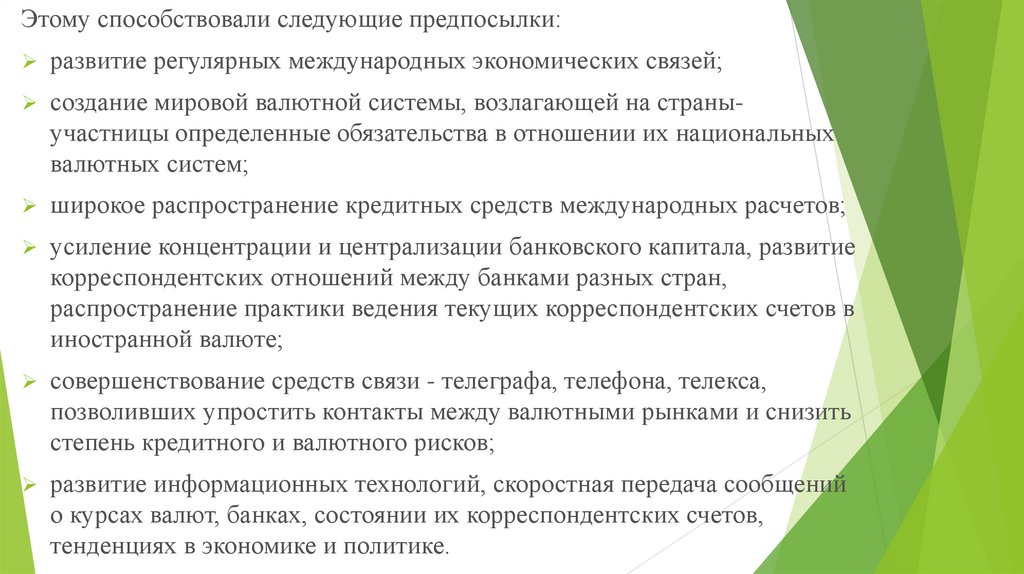 Этому способствовали следующие предпосылки:развитие регулярных международных экономических связей;