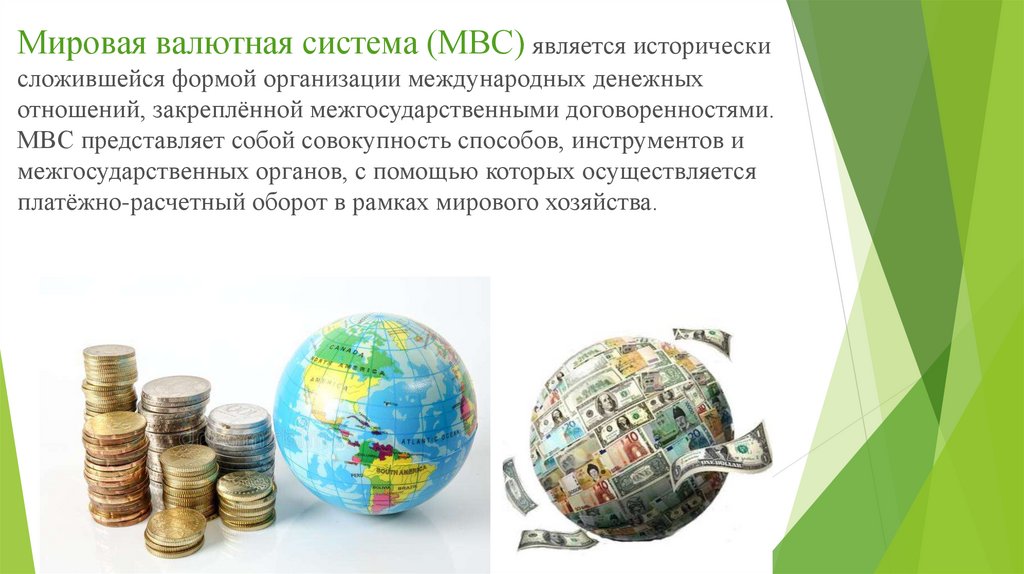 Мировая валютная система (МВС) является историческисложившейся формой организации международных денежных