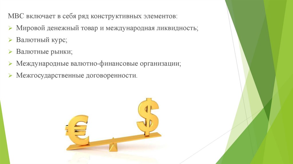 МВС включает в себя ряд конструктивных элементов:Мировой денежный товар и международная ликвидность;