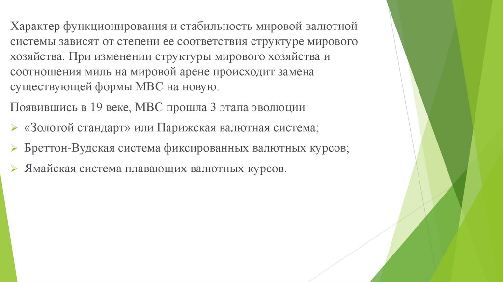 Характер функционирования и стабильность мировой валютнойсистемы зависят от степени ее соответствия структуре мирового