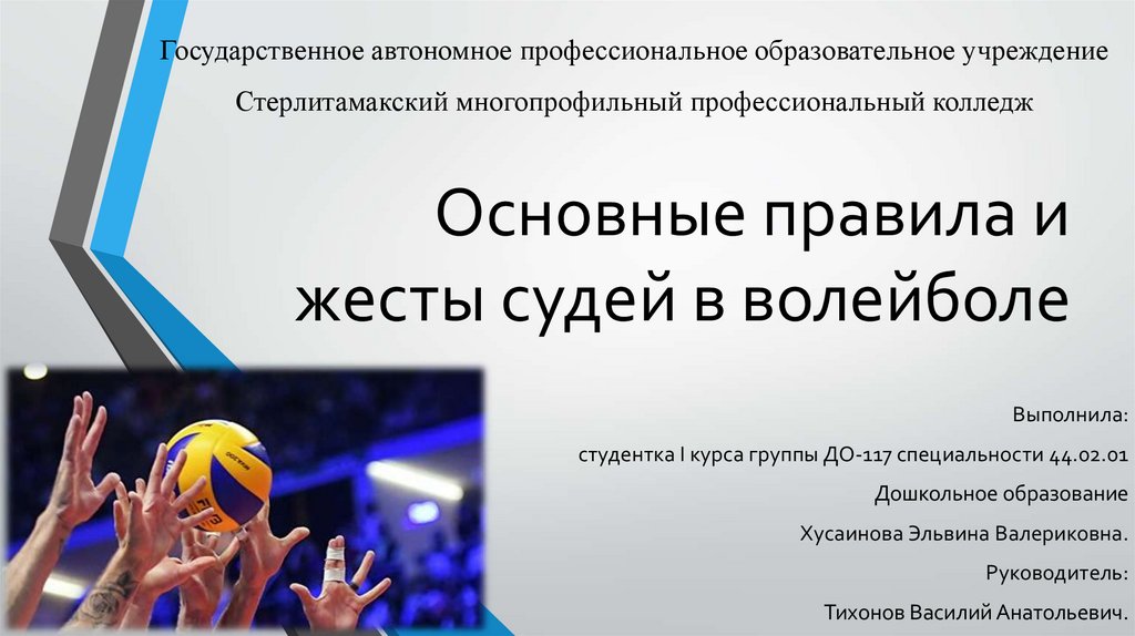 § 1. Характеристика основных правил ижестов судей в волейболе