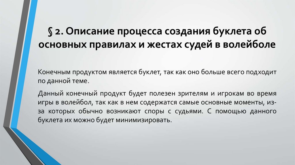 § 2. Описание процесса создания буклета обосновных правилах и жестах судей в волейболе