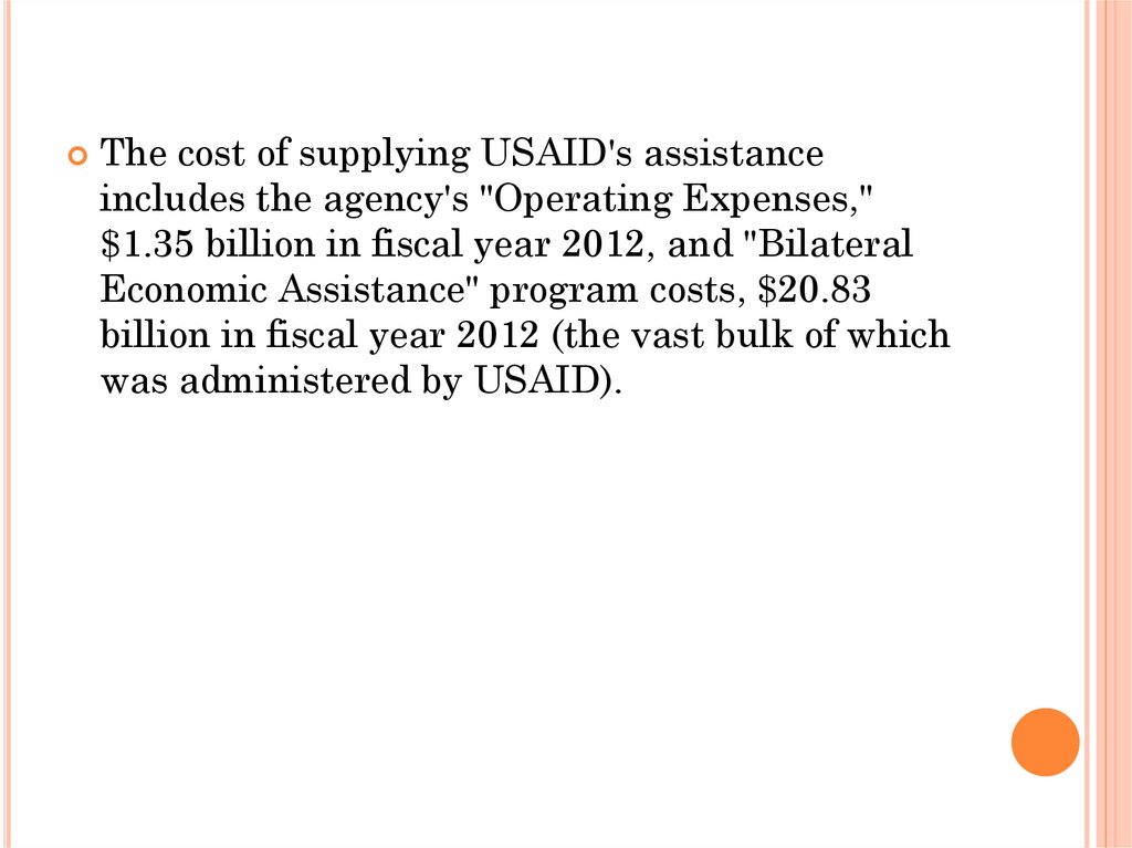 The cost of supplying USAID's assistanceincludes the agency's "Operating Expenses,"