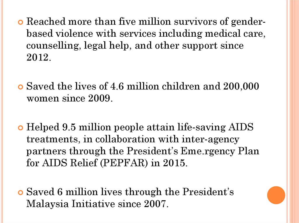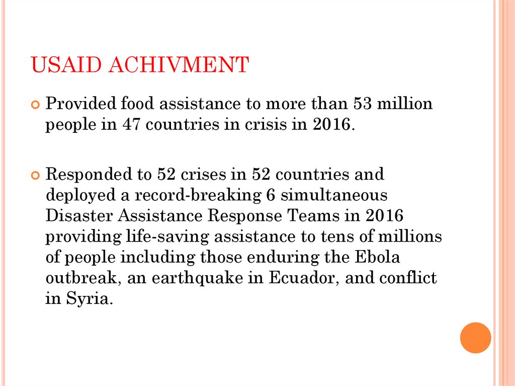 USAID ACHIVMENTProvided food assistance to more than 53 million